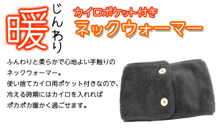【カイロポケット付き あったかグッズシリーズ】 ⇒アームウォーマー ⇒レッグウォーマー 冬のお役立ちグッズネックウォーマー ボタン付き 使い捨てカイロポケット付き #141482 首 温め グッズ