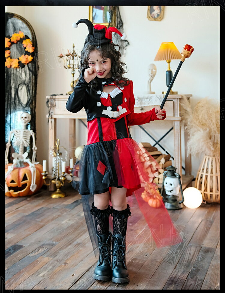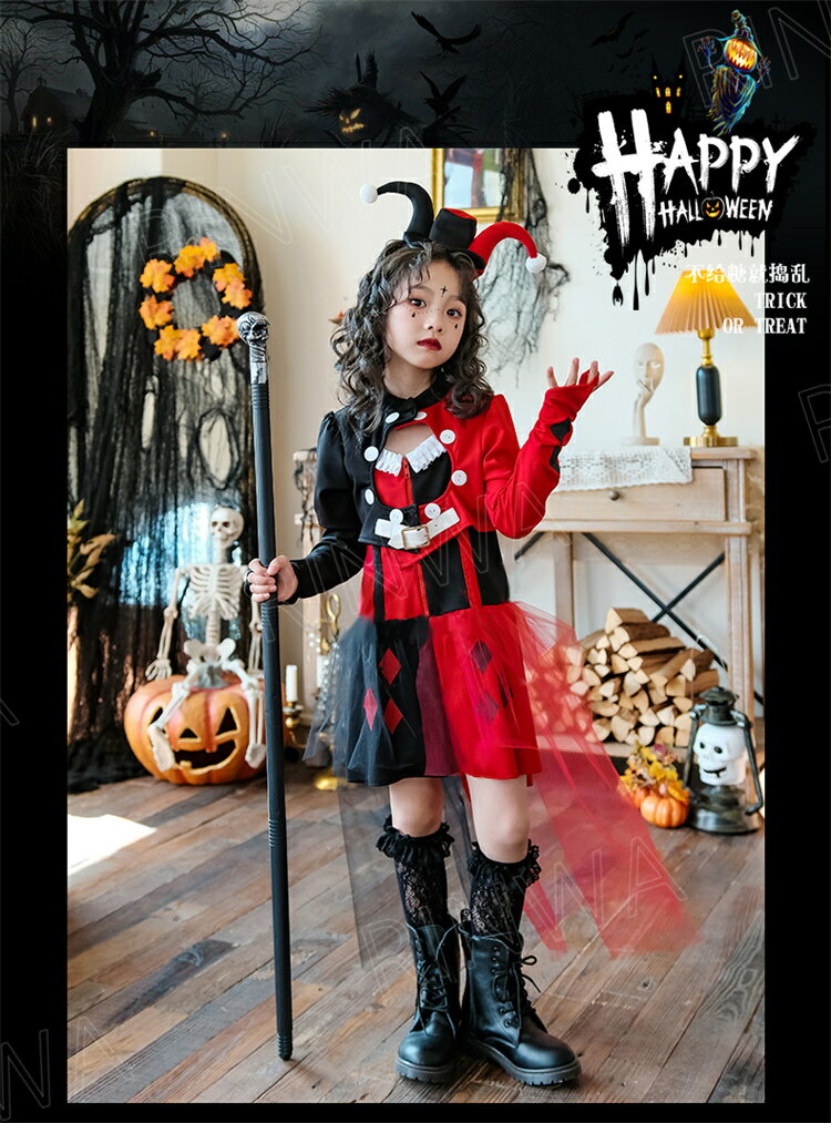ハロウィン 衣装 子供 ピエロ ハロウィン衣装 joker スカート コスプレ ワンピース キッズ コスチューム 子供用 巫女 魔女っ子 変装 キッズ ハロウィーン ヴァンパイア パーティー 仮装 学園祭 文化祭 新年会 演出服 舞台 万聖節 イベント クリスマス 写真撮影 演劇