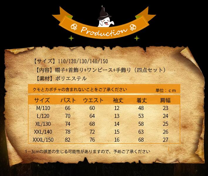 ハロウィン ウィッチ コスプレ 仮装 子供 女の子 魔女 おばけ 魔法使い ハロウィン衣装 子供 着ぐるみ コスチューム ハロウィン仮装 キッズ服パーティー イベント 衣装 舞台 演出 学園祭 文化祭 ゾンビ 送料無料