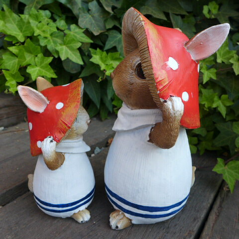 うさぎの置物 きのこウサギ親子2羽セット 6296・99H ホワイト ラビット 兎 オーナメント ウサギ ラパンオーナメント きのこ オブジェ ガーデン ガーデニング マスコット 雑貨 ディスプレィ