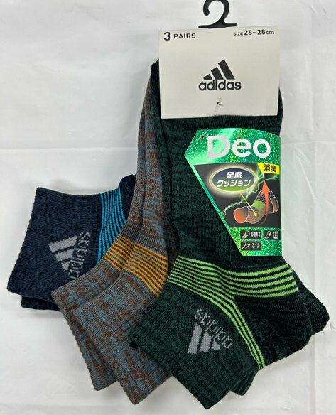 【アウトレット】メンズアデイダスソックス adidas 3足組靴下 DEO消臭 破れにくい 24cm~26cm 26cm~28cアウトレット】m 送料無料