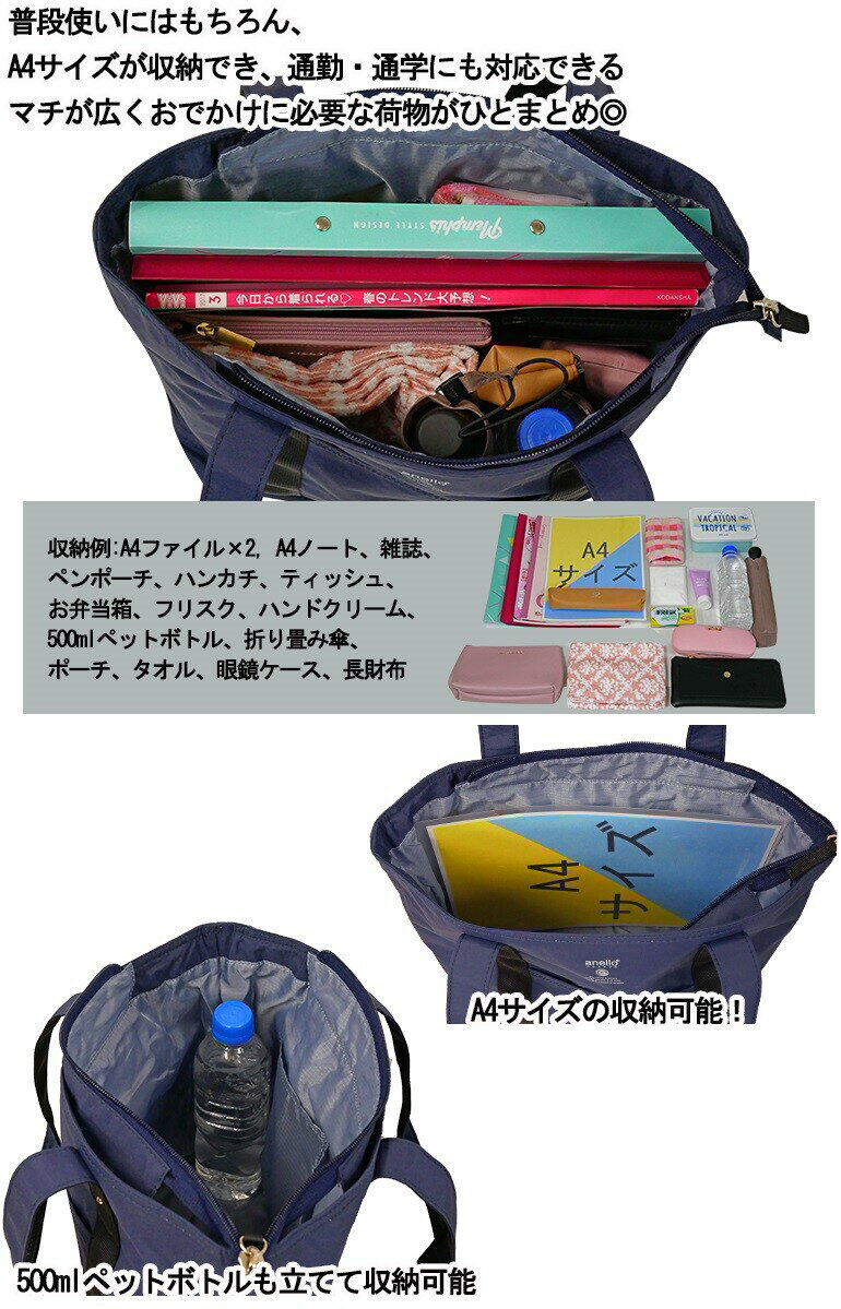 アネログランデ トートバッグ トート バッグ 手提げ かばん すべらないかばん レディース 軽量 撥水 大容量 大きく開く マチ広 A4 旅行 行楽 通学 通勤 学校 仕事 学生 OL 会社員 主婦 ママ 誕生日 プレゼント マザーズバッグ すべり止め付き anello