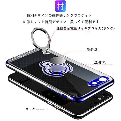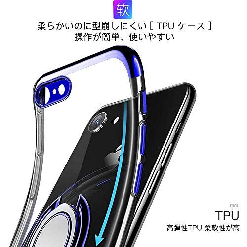 iPhone6sPlus ケース iPhone6Plus ケースリング付き 透明 TPU マグネット式 車載ホルダー対応 全面保護 耐衝撃 軽量 薄型 携帯カバー スクラッチ防止 滑り防止 アイフォン6sPlus/6Plus ケース 5.5インチ専用 一体型(iPhone6sPlus/6Plus ケース, ブルー)