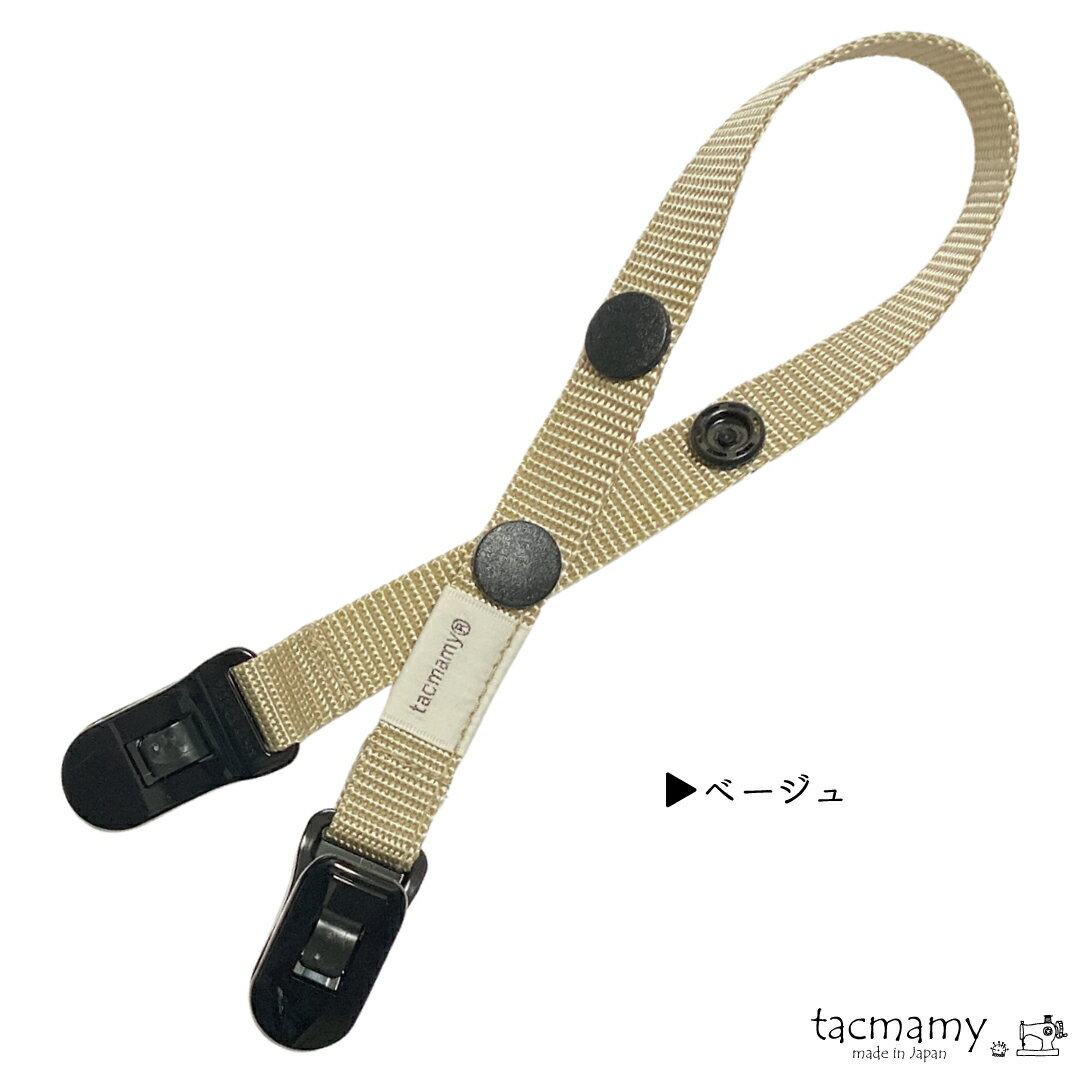 サイズ ・全長約41cm(クリップ部含む ホックを留めていない伸ばした状態) ・使用時約20cm(クリップ部含む) ・ホック間の長さ 内側15cm外側23cm ・紐幅15mm お手入れ 手洗いできます。