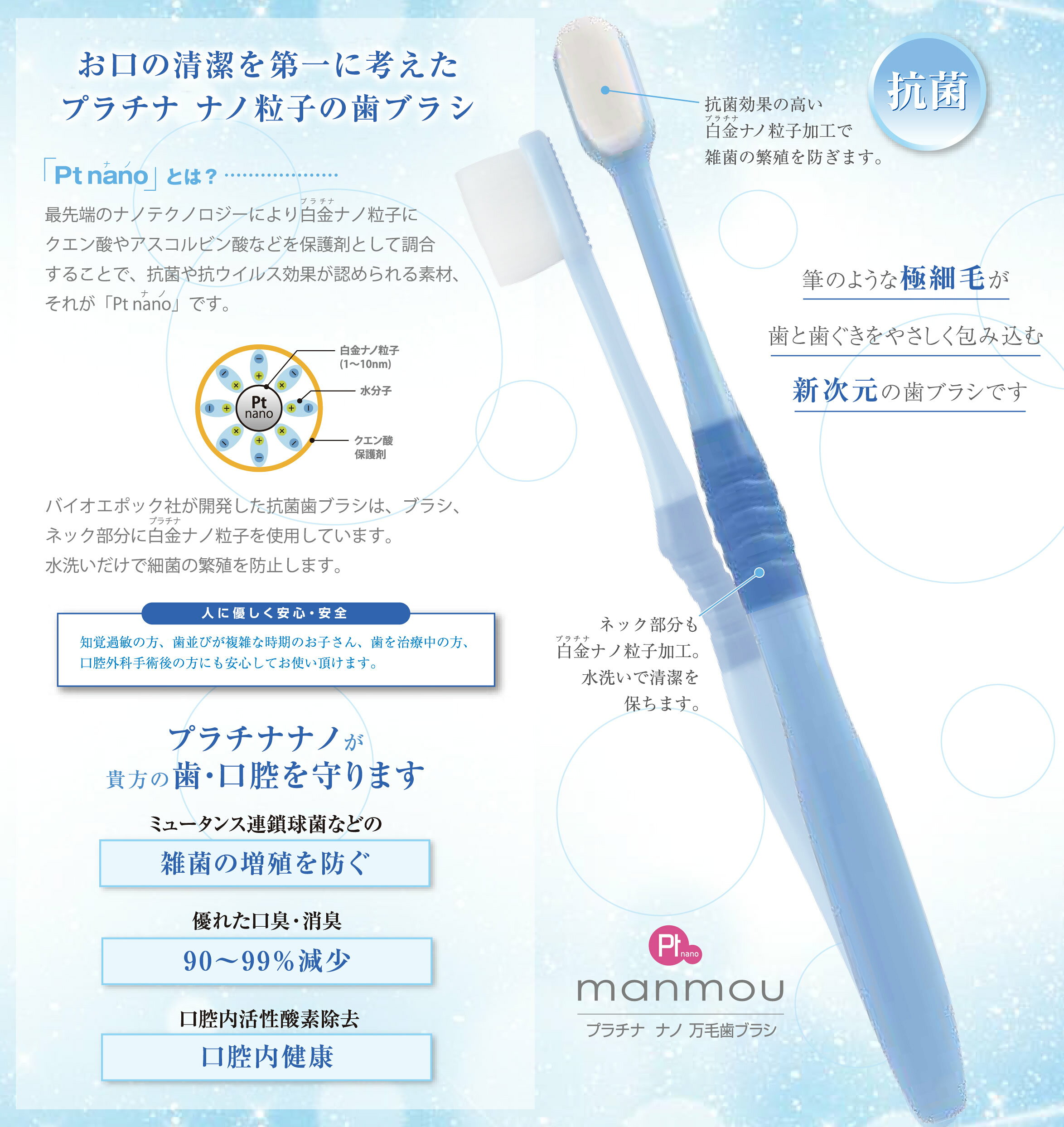【正規品】安心の日本製 プラチナナノ 万毛歯ブラシ manmou 美白 抗菌 消臭 水だけで洗う 口腔ケア 歯茎にやさしい シニア 高齢者
