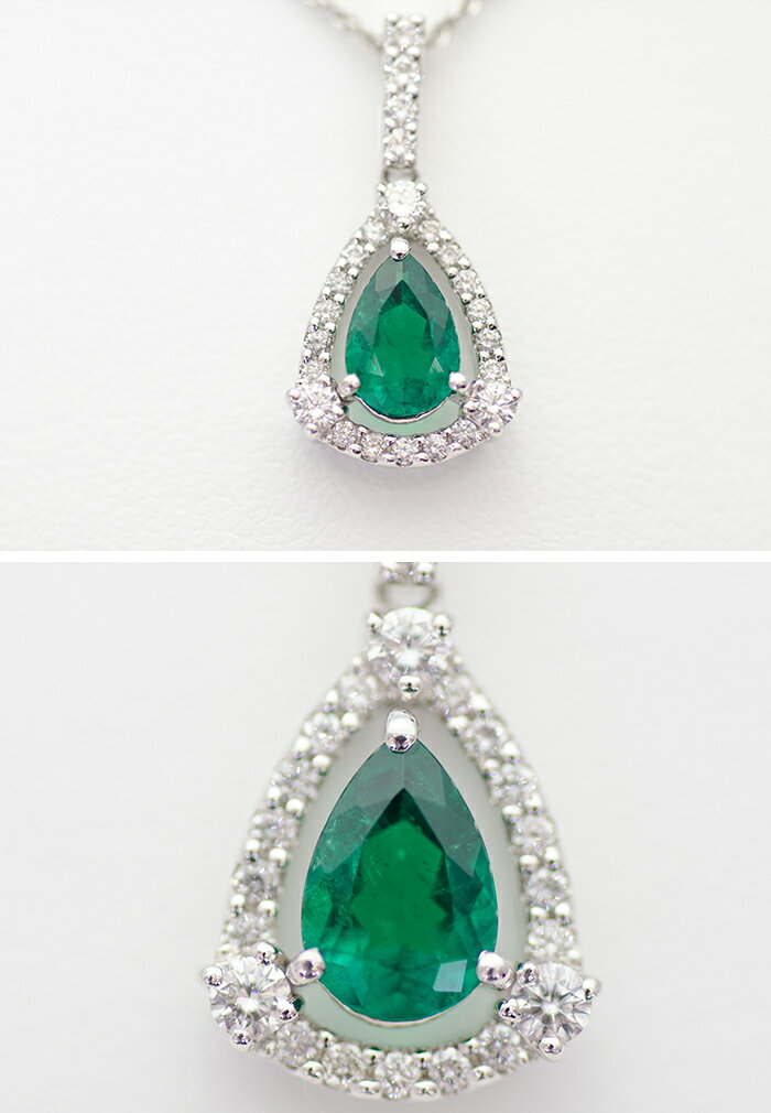 【中古】 エメラルド ネックレス 鑑別書付 エメラルド 0.91ct ダイヤモンド 0.36ct SIクラス ラウンド ペアシェイプ ファンシー プラチナ アクセサリー ジュエリー 宝石 レディース 【磨き上げ済】