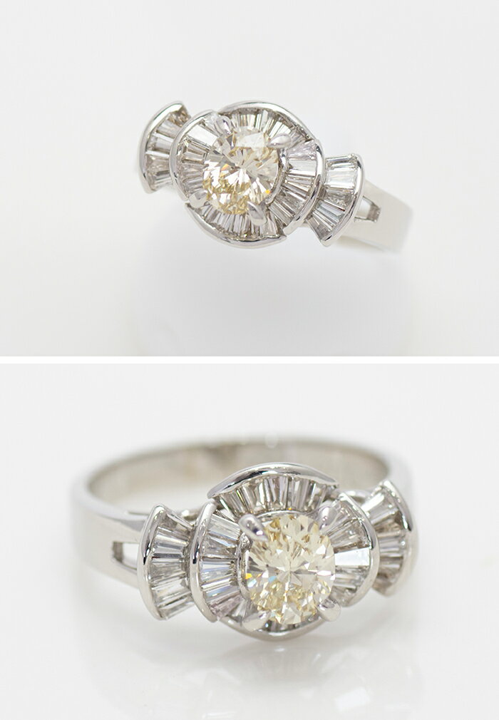 重さ 約5.6g 付属品 鑑定書 ケース 石/ルース 天然石 ■ダイヤモンド(中石) 0.583ct SIクラス ■メレダイヤモンド 0.74ct SIクラス 鑑定書付属 商品状態 中古 USED (洗浄・磨き上げ済み) 多少のすり傷や小傷があり、 使用感が少ないとても綺麗な中古品 注意 ※磨け上げ済みですが中古品の為、ルースや素材に磨き上げでは取れきれない小キズ・汚れなどがある場合がございます。