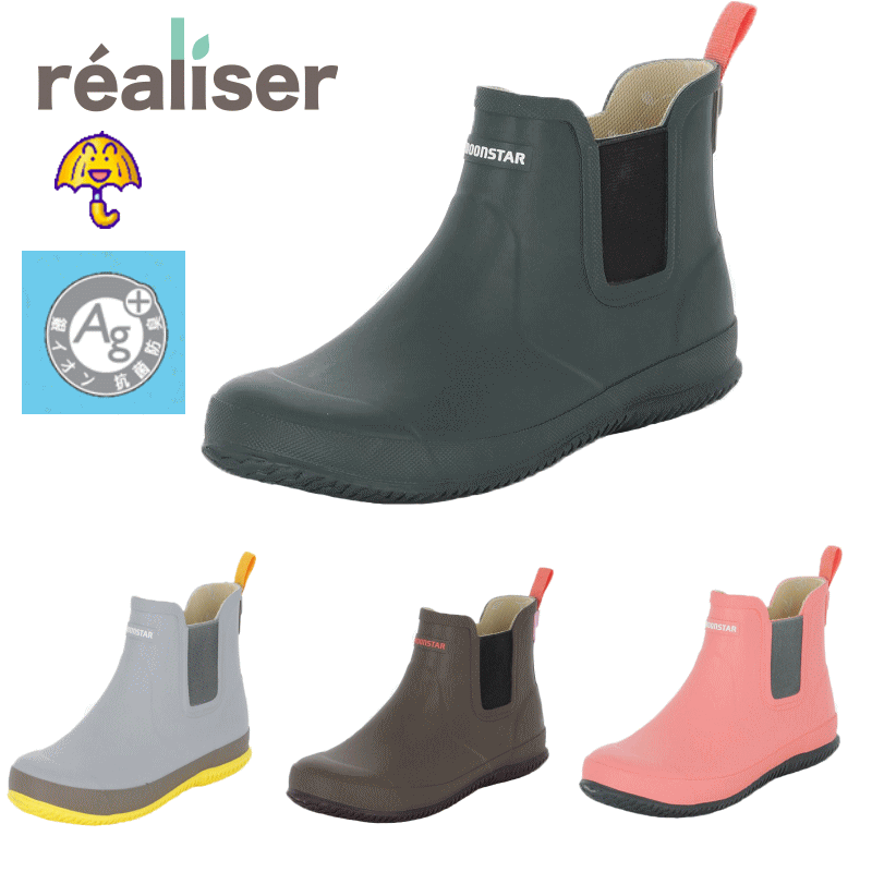 おしゃれ レインブーツ ムーンスター レアリゼ サイドゴア ワークブーツ 完全防水 レディース ラバーブーツ グリーン グレー ブラウン ピンク 軽量 かわいい アウトドア キャンプ 防雪 仕事 洗車 梅雨 農業女子 プレゼント 21cm 22cm 23cm 24cm 25cm 26cm 11410173