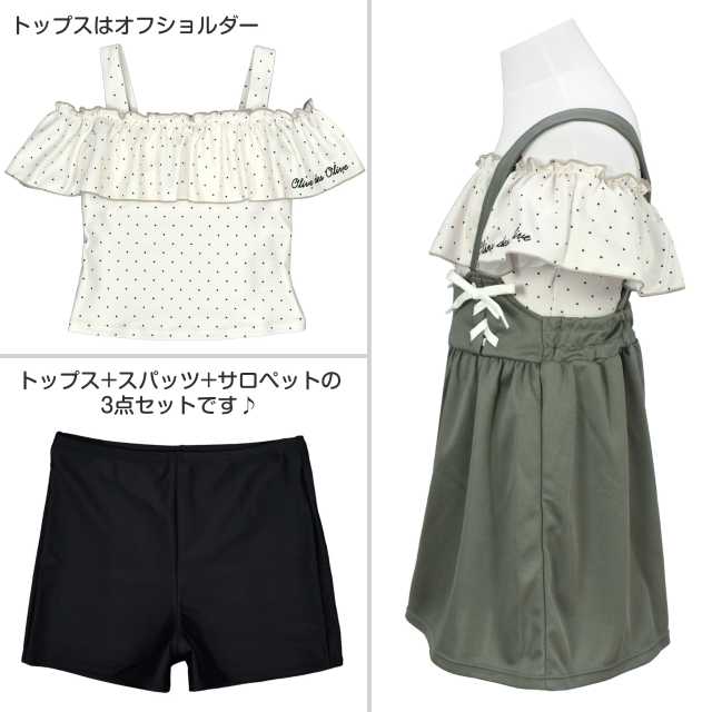 OLIVE des OLIVE オリーブ デ オリーブ サロペット付き 水着 3点セット 。