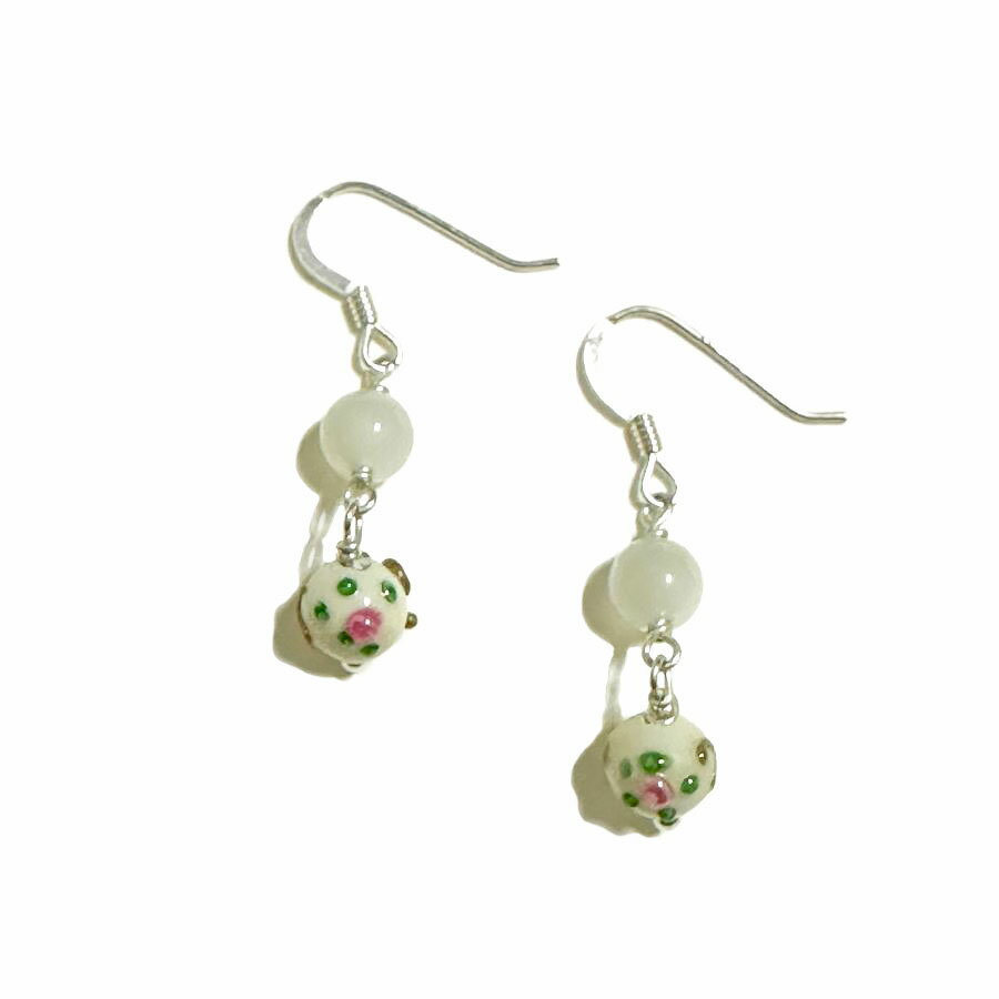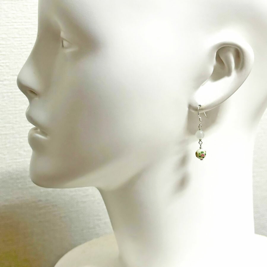 ムーンストーン とんぼ玉 ピアス (イヤリングに変更可) SSF シルバーフィルド