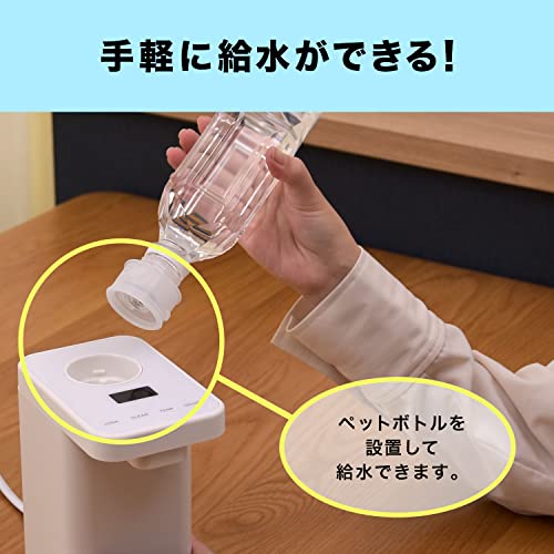 東京Deco 2秒でお湯がでる 卓上 ペットボトル ウォーターサーバー 瞬間湯沸かし デジタル表示 ホワイト [2.0Lペットボトルまで対応] ペットボトル式 熱湯 ホット ケトル 卓上対応 HOT専用 ウォーター サーバー コンパクト設計