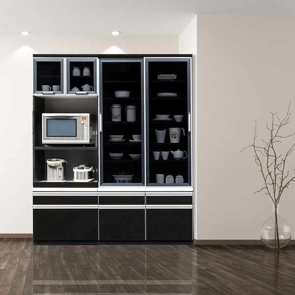 幅120 食器棚 高級感のあるブラックガラスを使用した食器棚です。