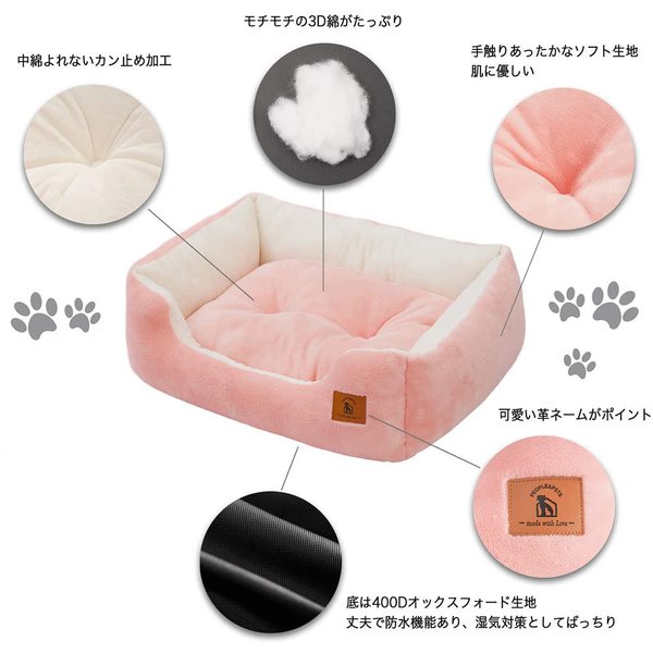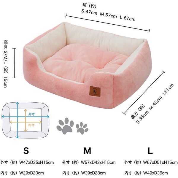 ●大切なペットを優しく包み込む心地良い素材 ●洗濯機で丸洗い可能 ●Sサイズ:外寸 約W47xD35xH15cm / 内寸 約W29xD20cm / 犬、猫などの小動物(〜3kg) ●Mサイズ:外寸 約W57xD43xH15cm / 内寸 約W39xD28cm / 犬、猫などの小動物(3〜6kg) ●Lサイズ:外寸 約W67xD51xH15cm / 内寸 約W49xD36cm / 犬、猫などの小動物(6kg以上) ●こちらの商品は即納対応商品です。