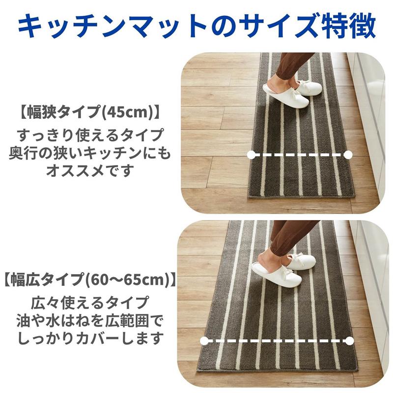 約60×180 約60×180(タイル)※色、柄のみ参照 調理中の水ハネも、ひと拭き ーデザイン・スタイリングー・薄手だから足に引っかかりにくい・キッチンになじむ使いやすいカラー・安心の日本製ー素材ー・水ハネや汚れもサッと拭き取れる素材・パイルや布素材ではなく、シミや劣化が起こりにくい◆D-STANDARD上質なものと暮らしたいけど、価格はやっぱりお手頃でなくちゃ。