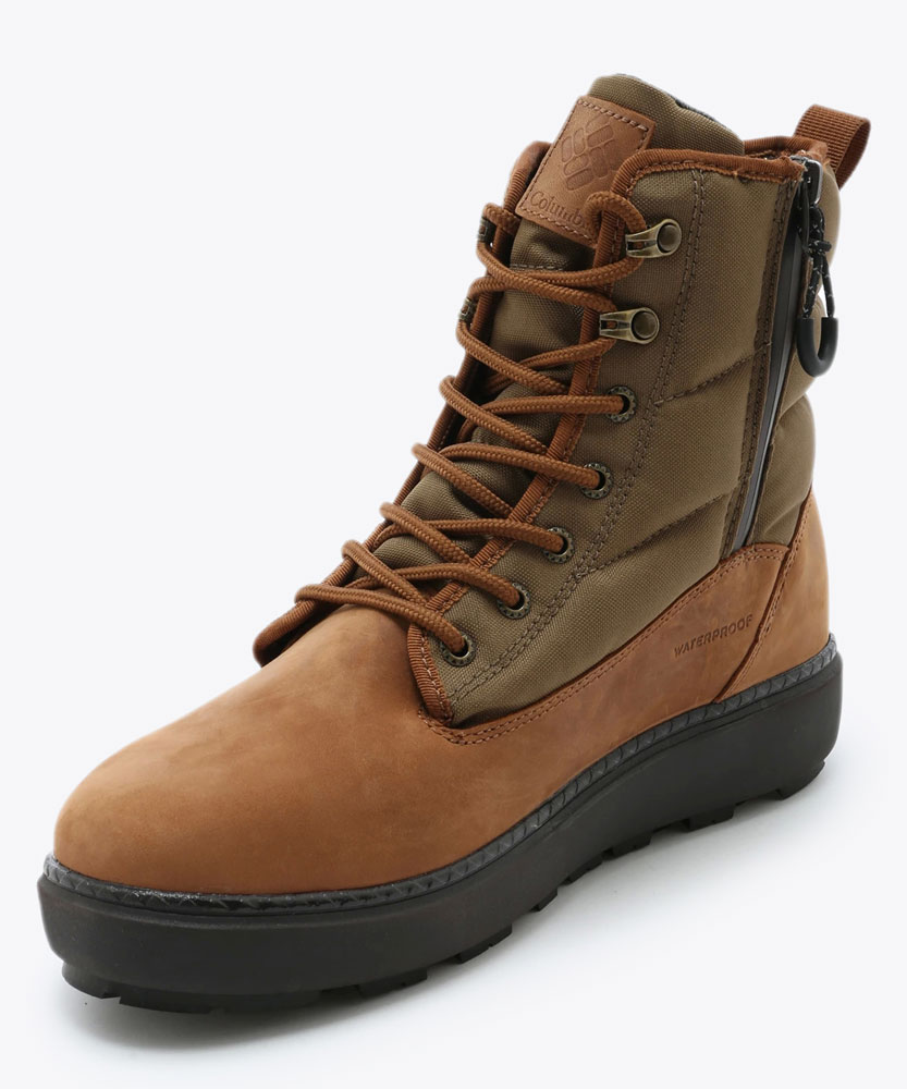 耐摩擦性、耐久性に優れたコーデュラファブリックとレザーを組み合わせたアッパーが耐久性を高め、ウォータープルーフ仕様により雨の日も雪の日も足を濡らさず安心。