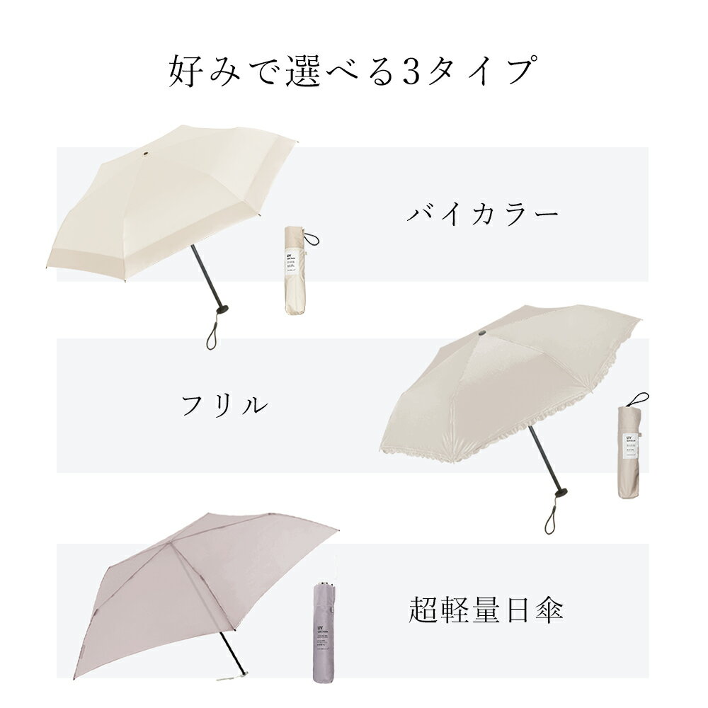 製品名 CICIBELLA フリル日傘/バイカラー日傘 サイズ 【フリル/バイカラー日傘】 全長:50cm 収納時の長さ:21.5cm 直径:90cm 【超軽量日傘】 全長:48.2cm 収納時の長さ:21.5cm 直径:81.5cm ※測定方法によって誤差が生じますので、予めご了承下さい。
