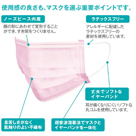 【商品名】 ・サラヤ サージカルマスク 【カラー】 ・ピンク 【サイズ】 ・Sサイズ ・約145mm × 95mm 【内容量】 ・50枚入×10箱 【生産国】 ・中国 【材質】 ・本体、フィルター:ポリプロピレン不織布 ・イヤーバンド:ポリエステル ・ノーズピース:ポリエチレン 【使用上の注意】 ・本品は有害な粉塵・ガス等を防ぐ目的には使用できません。