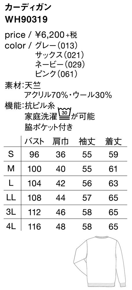 素材:天竺(アクリル70%・ウール30%)機能:抗ピル糸/脇ポケット付JANコード:S 4932309565453M 4932309565460L 4932309565477LL 49323095654843L 49323095654914L 4932309565507