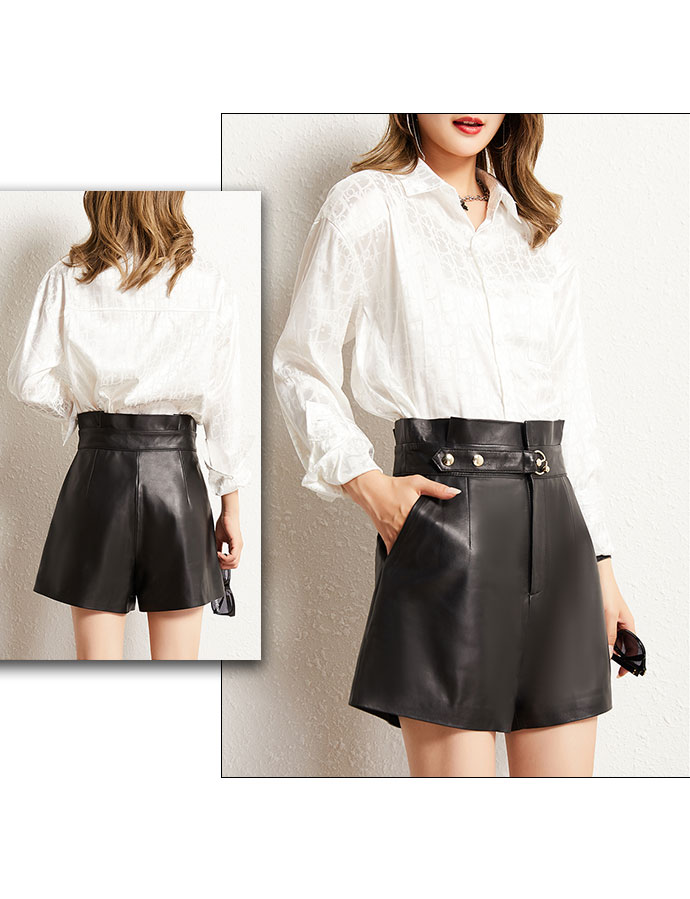 ラムレザー ショートパンツ ワイドパンツ 本革 レディース レザー パンツ ショーパン ラムレザー ブラック 4Lまで 大きいサイズ コーデ 脚長効果 美シルエット