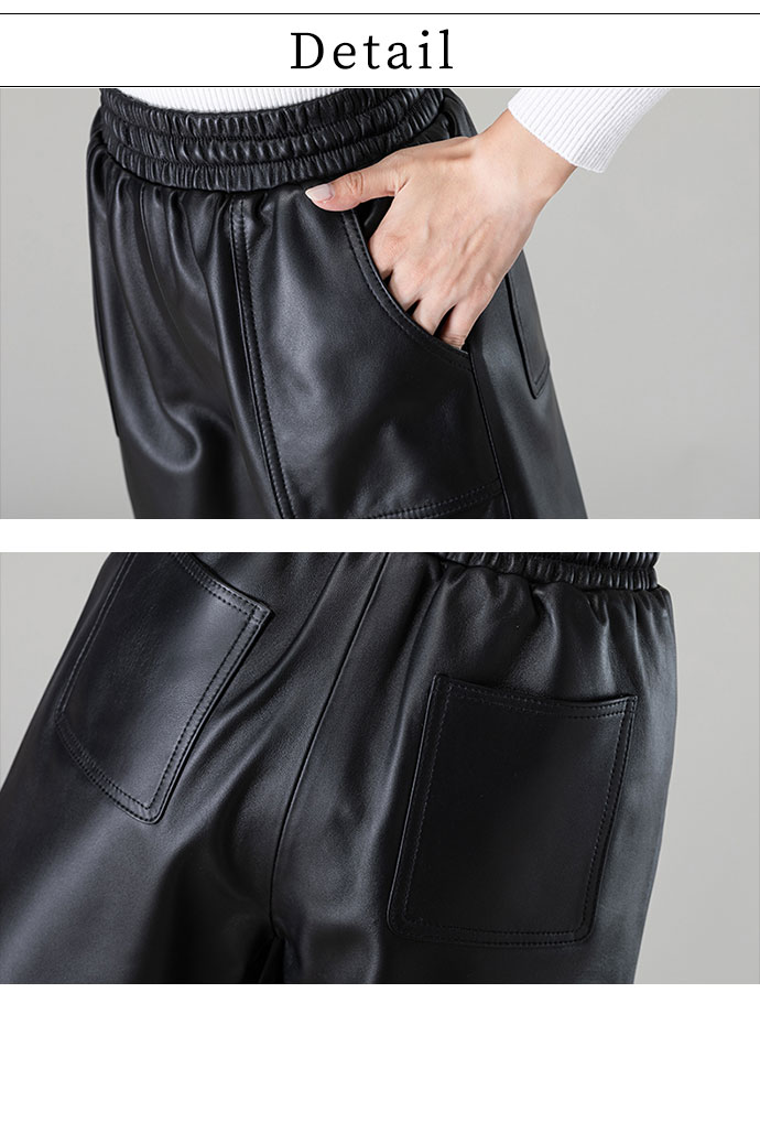 本革 ショートパンツ ラムレザー パンツ レディース サイドポケット ショーパン ウエストゴム フィット 無地 ブラック 4Lまで 大きいサイズ 脚長効果