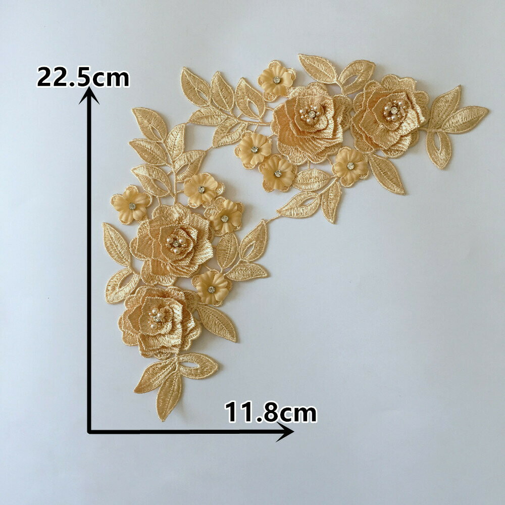 刺繍レース ビーズ花芯 モチーフ ドレス 2ペア計4枚 光沢フラワーモチーフ パール付きレースリボン かぎ針レース トーションレーステープ 輸入リボン フリルテープ 輸入リボン お花レースパーツ販売 手芸用レース 手芸用テープ ステージ衣装やドレス、ベリーダンス、レオタード、バトントワリング、お洋服や作品などに縫い付けるだけでワンポイントアクセントとして個性的な仕上がりになります。