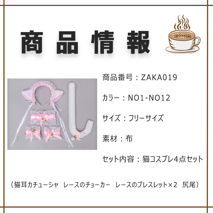【 店長お薦め 】猫コスプレ 萌え猫アイテム 4点セット ロリータ レディース 猫耳カチューシャ レースのチョーカー レースのブレスレット×2 しっぽ 鈴付き リボン付き ねこコスチューム ふんわりカチューシャ ハロウイン コスプレ クリスマス 学園祭