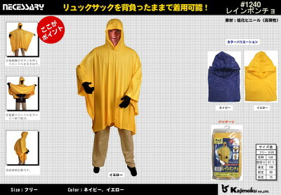 商品サイズ:幅20×奥行13×高さ2cm420g材質:ポリ塩化ビニル100%原産国:中国・ミャンマー・(2か国生産)さっとかぶれるお手軽レインポンチョ。
