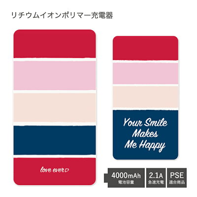 【PSE適合品】 No144 ボーダー 受注生産 急速充電 USB出力 リチウムイオンポリマー充電器 2.1A 4000mAh モバイルバッテリー iPhone Android レッド ピンク ストライプ 可愛い おしゃれ ファッション | かわいい モバイル バッテリー スマホ 充電器
