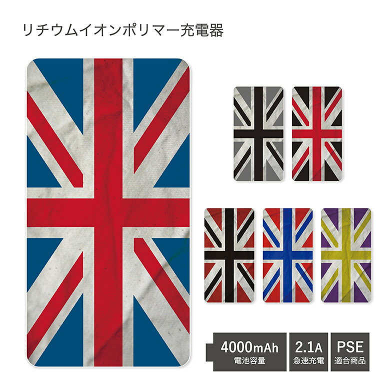 【PSE適合品】 No81 union jack 受注生産 急速充電 USB出力 リチウムイオンポリマー充電器 2.1A 4000mAh モバイルバッテリー microUSBケーブル付属 iPhone Android ユニオンジャック イギリス 国旗 おしゃれ 可愛い オシャレ d:coo | 充電器 バッテリー