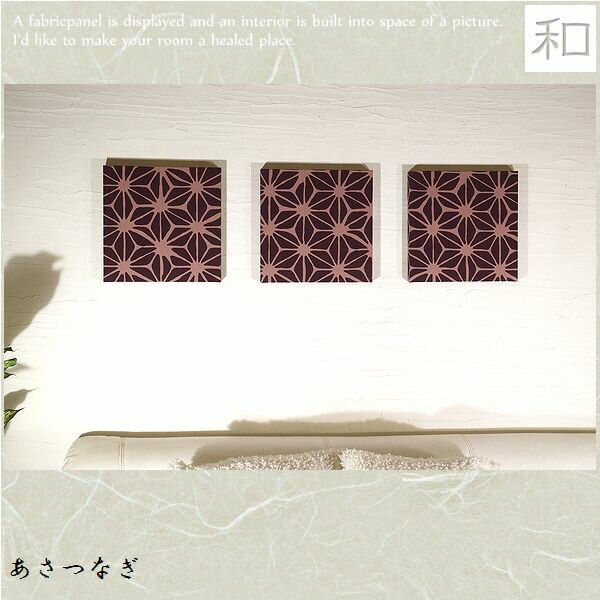 和室 3枚組 ファブリックパネル アリス 麻つなぎ 30×30cm 小豆色 紫 和 和柄 掛け軸 床の間パネル 和雑貨 昔から日本人に馴染みのある麻模様です。