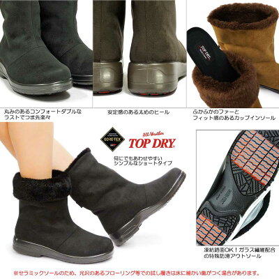 【おトクなGW!3%OFFクーポン】トップドライ 防水レディースブーツ ショート TDY3911 ゴアテックス 2WAY 防滑 透湿 防滑 ファー TOPDRY