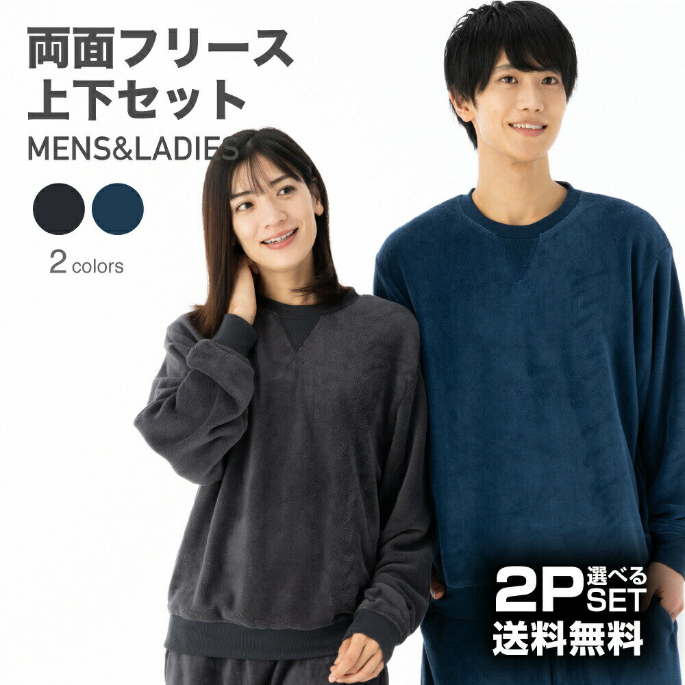 フリース パジャマ 上下セット 2枚組 ルームウェア メンズ レディース 冬 もこもこ 部屋着 上下 裏起毛 長袖 秋冬 暖かい あったか 大きいサイズ セットアップ 寝巻き ゆったり 送料無料