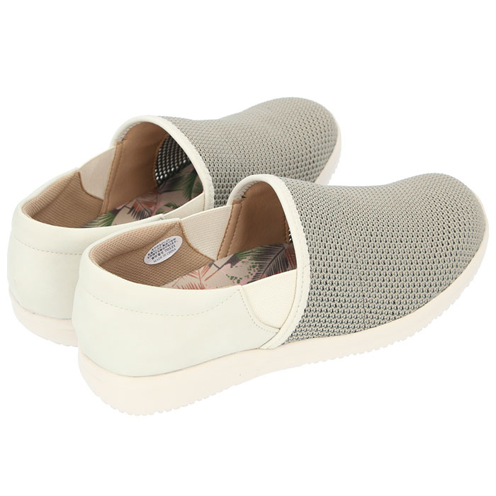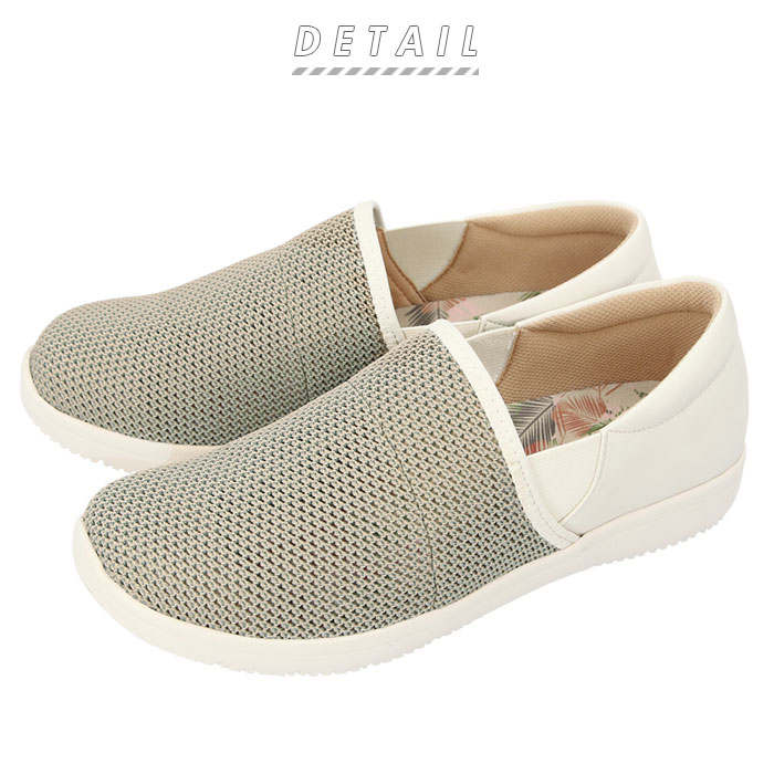 ・通気性に優れたソフトなメッシュ素材をアッパーに使用し、履き口とつま先部分は内側から柔らかな合皮素材を重ねることで丈夫に。