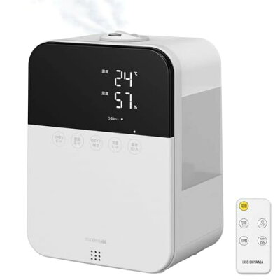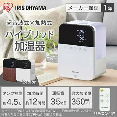 アイリスオーヤマ(IRIS OHYAMA) 加湿器 大容量 超音波式 スチーム式(加熱式) ハイブリット式 加湿量 350ml タンク容量 4.5L ~10畳 12時間連続加湿 アロマ対応 リモコン付 小型 卓上 デスク用 HDK-35-W ホワイト