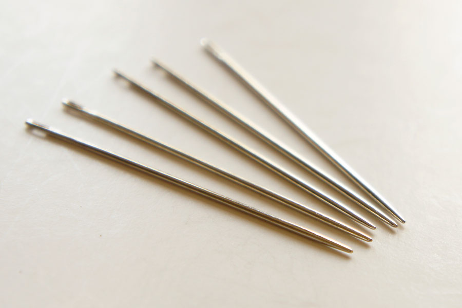 ■商品名:手縫針(丸針・短)5本入 菱目打ちやヨーロッパ目打ち、菱ギリなどであけた穴に通しやすい、先端が丸い針です。