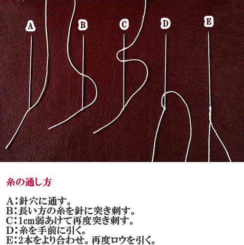 菱目打ちであけた菱穴に通しやすい先端を丸めた丸針です。