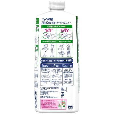 P&G ジョイ W除菌 ミラクル泡スプレー 食器用洗剤 緑茶の香り 詰め替え 約3回分(630mL) 1本 4987176027634
