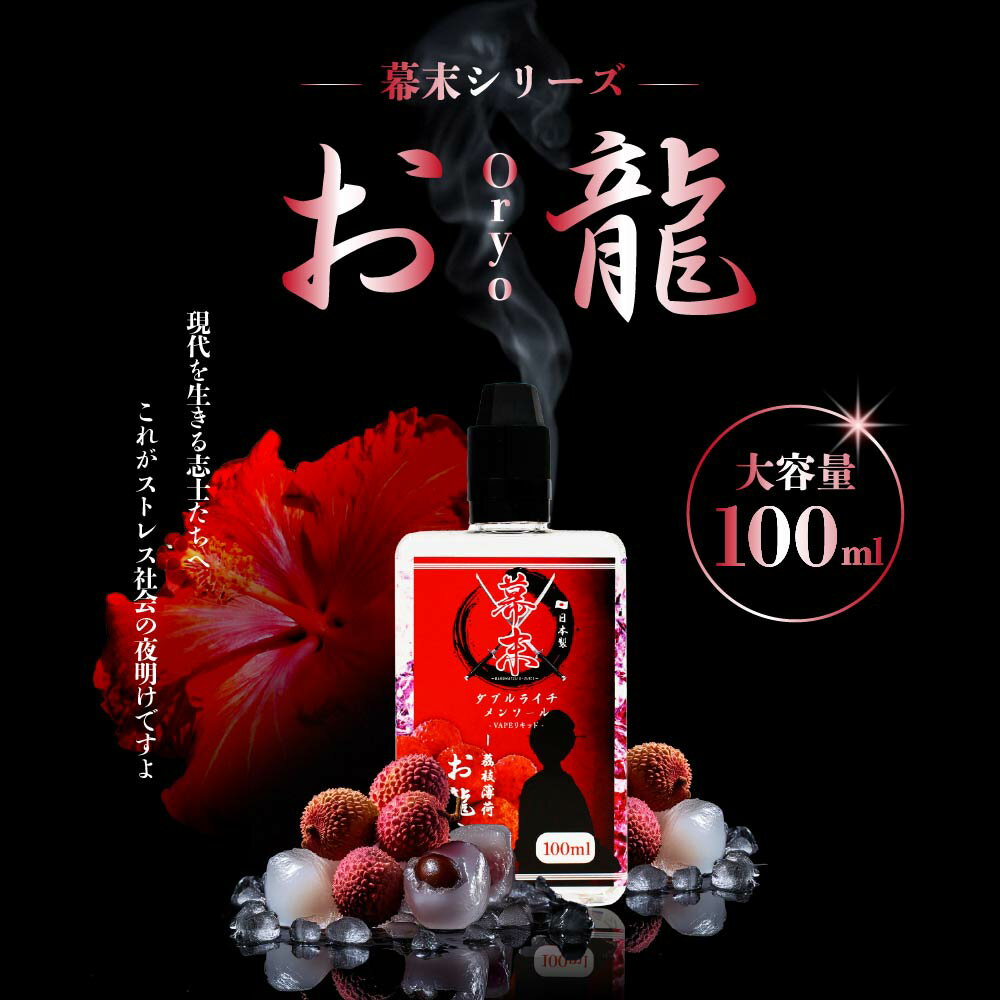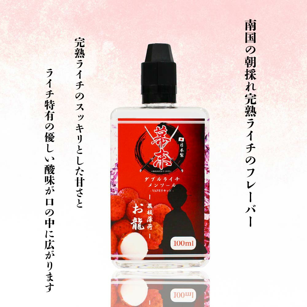 幕末 リキッド リキッド ライチ メンソール VAPE 大容量 100ml VAPE カートリッジ 補充 用 国産 日本製 リキッド 電子たばこ 幕末 お龍Wライチメンソール 再生 再利用 復活 アトマイザー 補充液 互換 スーパーハード ニコチン0 タール0