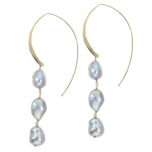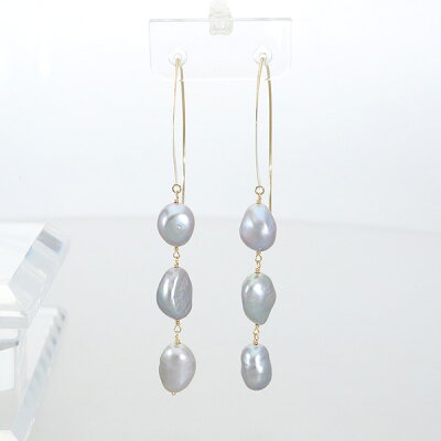 Irise coffret K10 ゴールド パール 真珠 バロックパール グレー 3連 ピアス 2P 両耳用 レディース 10金 10k フック ドロップ 揺れる ぶら下がり パールピアス 淡水 淡水真珠 淡水パール 女性 大きめ 大ぶり 長い 誕生日 記念日 ギフト プレゼント おしゃれ