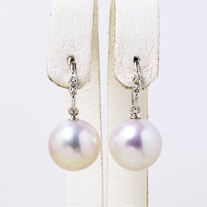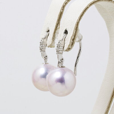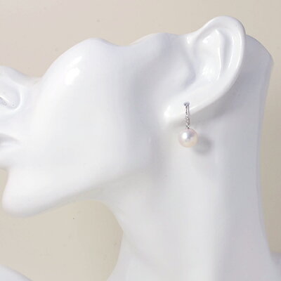 淡水真珠 ダイヤ付き フックパールピアス ホワイト系 9.0-9.5mm A~BB K18WG ホワイトゴールド [n5](真珠 ピアス 揺れる ぶら下がり) 18k 18金