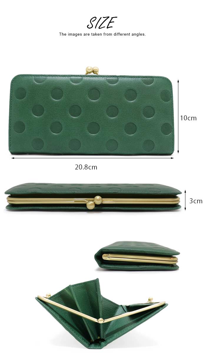 商品名 本革財布 レザー 水玉 がま口 ロングウォレット 本牛革 長財布 シリーズ un signet / アンシグネ 仕様 カードポケット×10 フリーポケット×2 札入れ(マチあり)×2 小銭入れ×1 サイズ H(縦幅10cm×W(横幅)20.8cm×D(厚み)3cm ※上記実寸サイズは当店で計測しておりますので、実際の商品と誤差が出る場合が御座います。