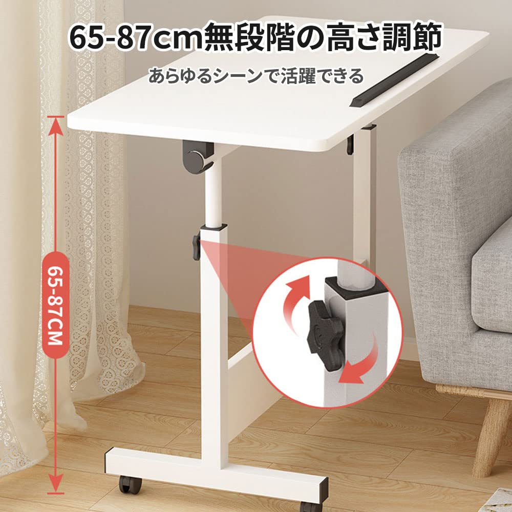 サイドテーブル キャスター テーブル 高さ調節 幅60CM PCデスク キャスター付き 天板回転 パソコンデスク 省スペース おしゃれ 折りたたみ コンパクト デスク ワイド コの字 テーブル ベッドサイドテーブル ソファ サイドラック