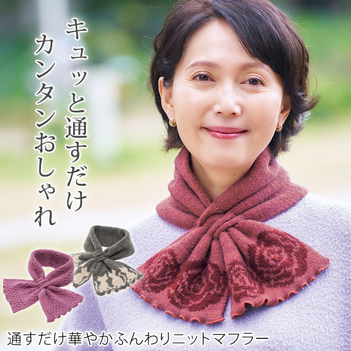 通すだけ華やかふんわりニットマフラー [Z1826] マフラー レディース ファッション ニットマフラー お洒落 華やか 上品 コンパクトマフラー ネックウォーマー 首 暖かい 東レ コンパクト ミニ 差し込み グレー ピンク