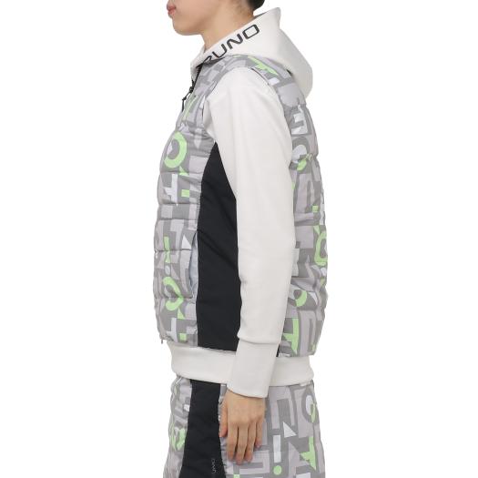 GOLFのロゴをユニークにレイアウトした、ポリエステルタフタダウンベスト。