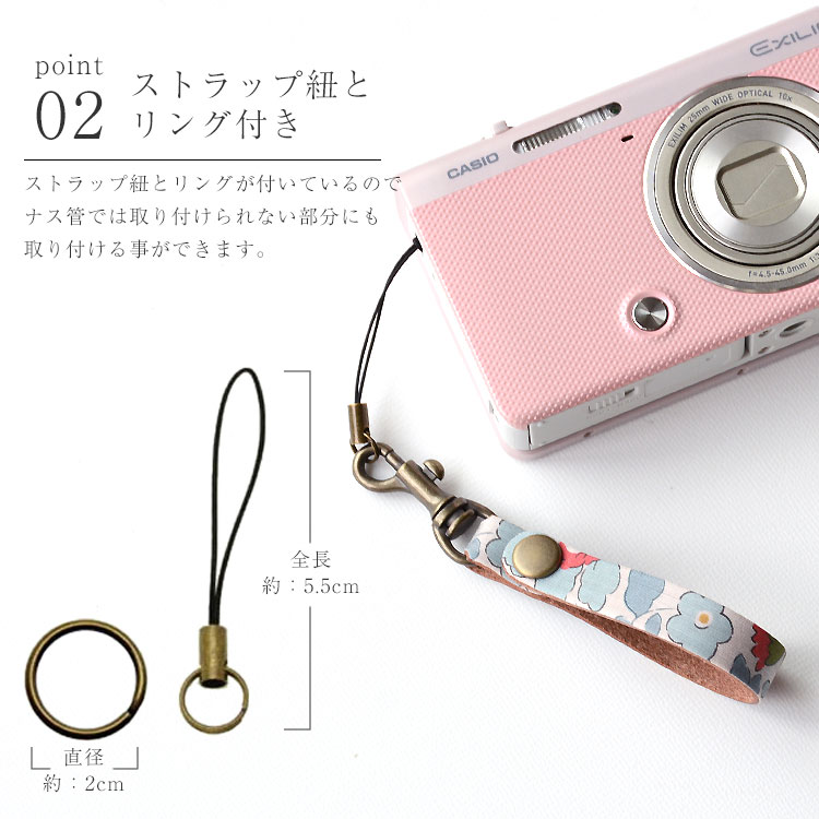 ナス管がついているので、スマートフォンや携帯の落下防止だけでなく様々なシーンで 用途に合わせて活躍してくれます。