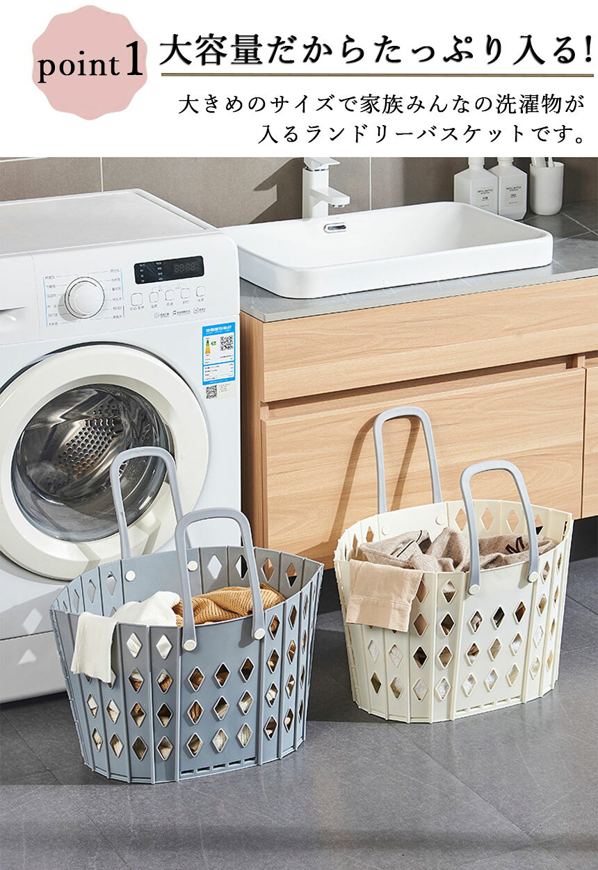 ランドリーバスケット 折りたたみ 取っ手付き付き ランドリーボックス ランドリーバッグ ランドリー 脱衣所 洗濯かご 洗濯カゴ 洗濯物入れ 洗濯ボックス 大容量 折り畳み 軽い 軽量 コンパクト 省スペース 隙間収納 おもちゃ収納 衣類収納 おしゃれ 収納 かご