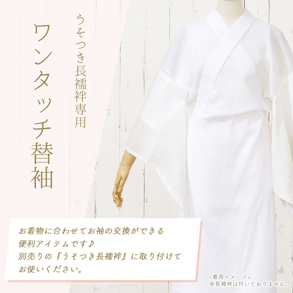 別売りの「うそつき長襦袢」に取り付けて使用する『ワンタッチ替袖』でございます。