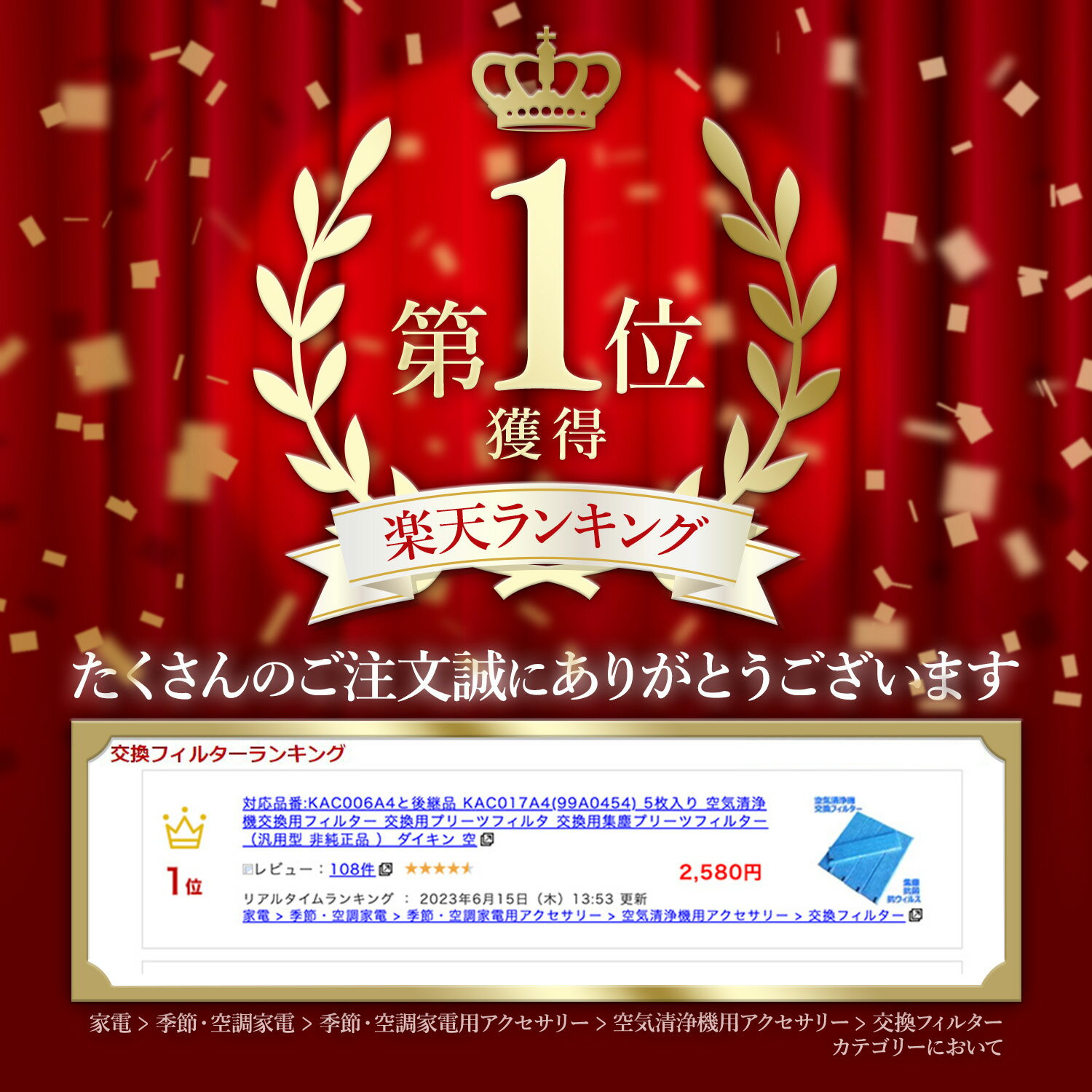 対応品番:KAC006A4と後継品 KAC017A4(99A0454) 5枚入り 空気清浄機交換用フィルター 交換用プリーツフィルタ 交換用集塵プリーツフィルター (汎用型 非純正品 ) ダイキン 空気清浄機 用互換 フィルター