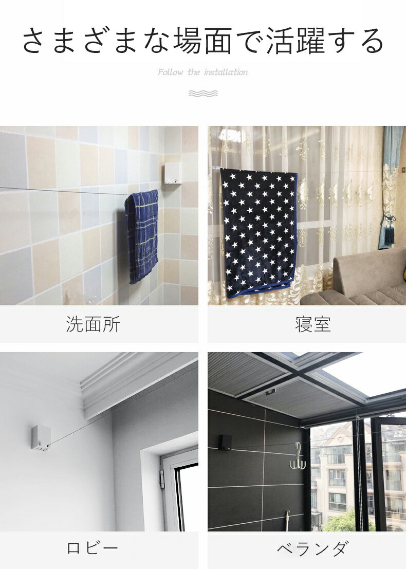 室内物干しワイヤー 洗濯物干しワイヤー 最大耐重荷20KG ワイヤー 室内物干しワイヤー 最大耐重荷20KG 穴開けなし 伸縮式 取付簡単 室内/屋外 ベランダ 防水防錆 壁付 省スペース収納 室内屋外兼用 室内物干しワイヤー 洗濯物干し 5