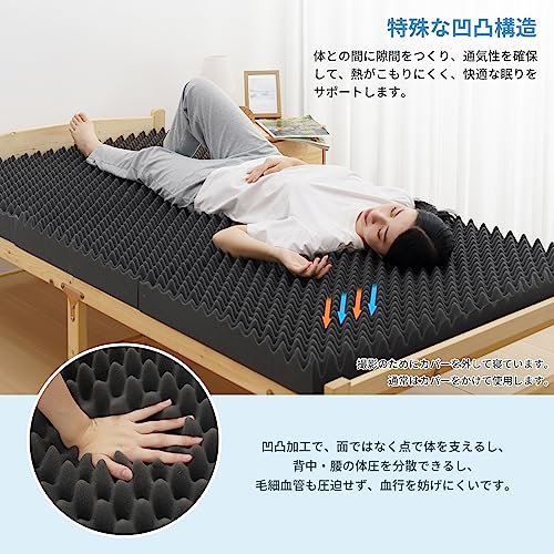 HOMFINEの凹凸加工マットレスを使うと質の良い深い眠りを得る!br?【凹凸加工】ウレタンは凹凸加工で、面ではなく点で体を支えるし、背中・腰・お尻の体圧を分散できるし、毛細血管などの循環系が圧迫されず血行を妨げないため、質の高い睡眠へと導きます。